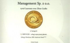 Our Hotel has also won the TOPHOTEL award twice in the most important category for us, namely Best Service. The award is given by Netmedia SA to the best hotel facilities in Poland selected by the users of the hotele.pl website. The award that we won in the Quality International competition for a few years in a row in the QI Services – Top Quality Services category is also a valuable token of appreciation. The award is given by the committee of representatives of the Ministry of Regional Development, Polish Agency for Enterprise Development, Polish ISO 9000 Forum and the editorial team of Dziennik Gazeta Prawna daily's Business Forum, who appreciated and rewarded our efforts to promote quality.
