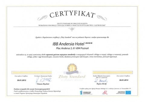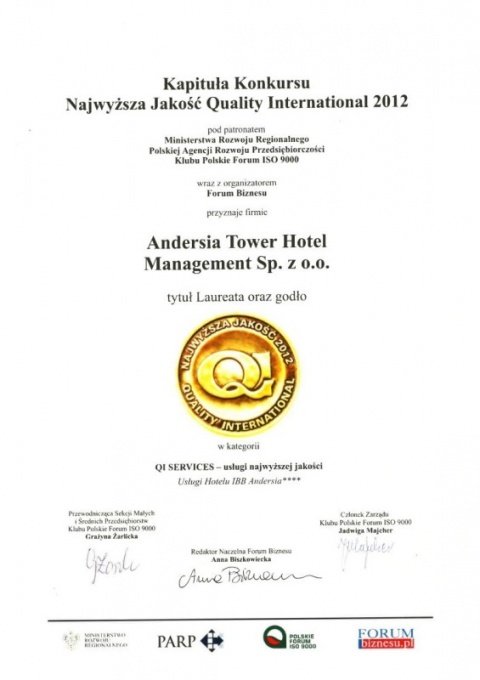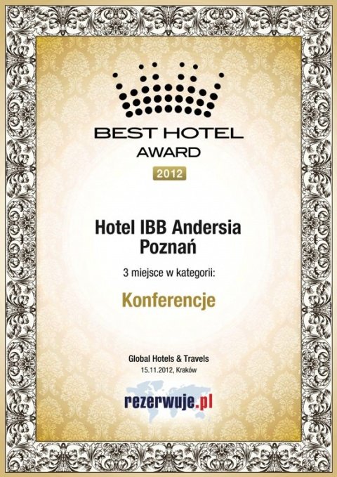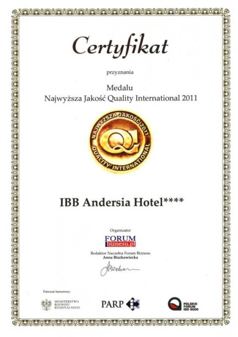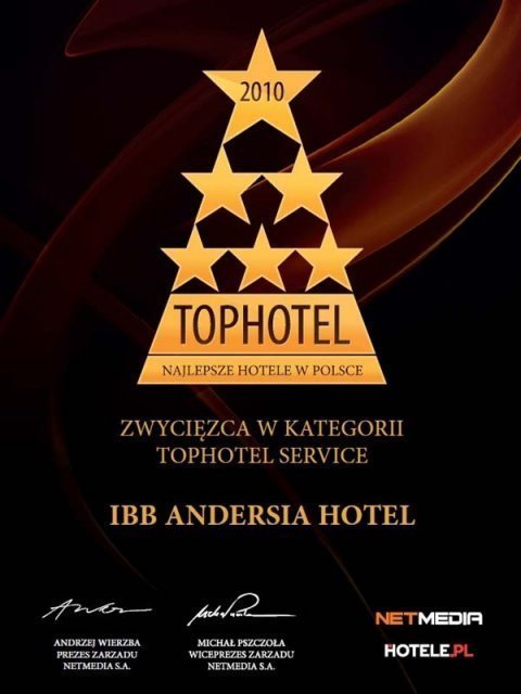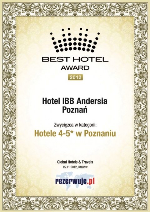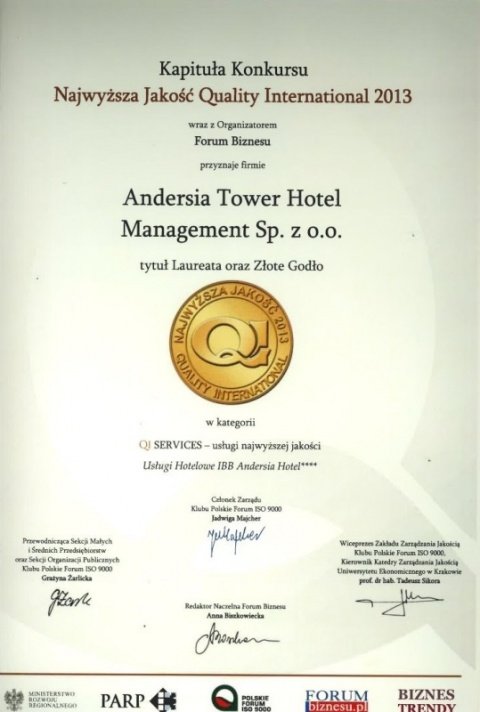 Trade media and Guests themselves gave IBB Andersia Hotel a number of prestigious awards for meeting highest standards and providing best service as a promoter of quality.